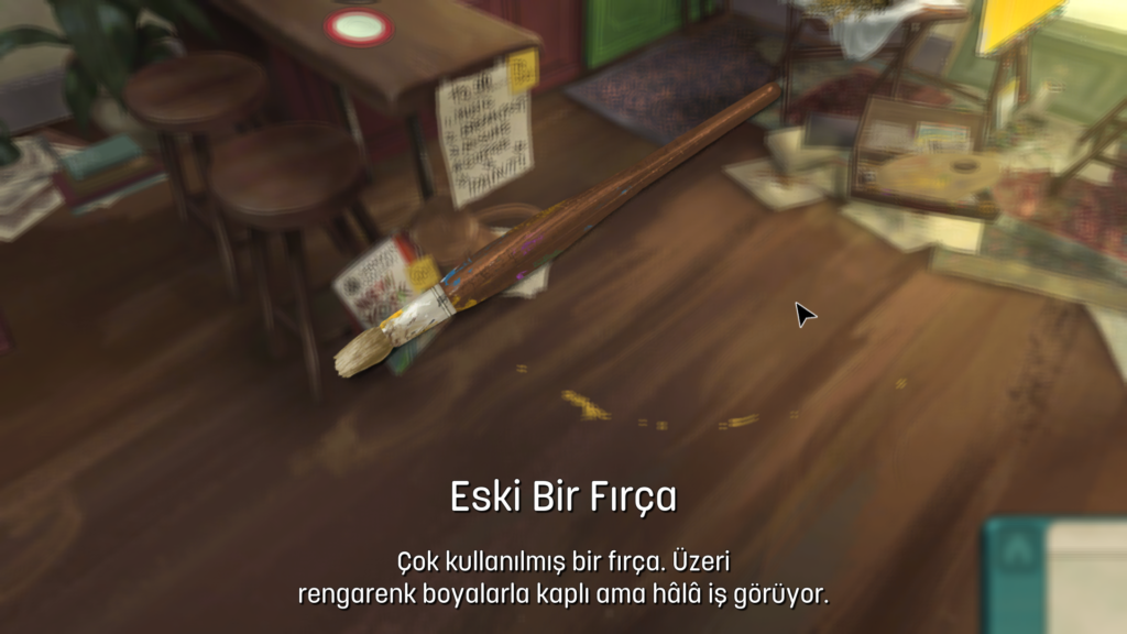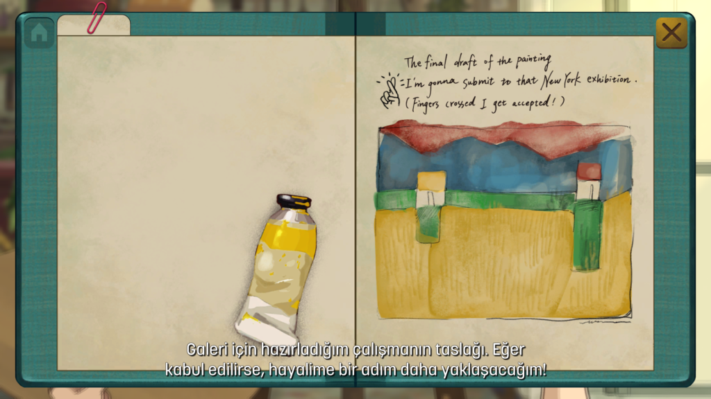 • Bulmacalar: Bulmacalar, resim yapmak, renkleri karıştırmak, eskiz defterindeki notları deşifre etmek ve çevreyi gözlemlemek gibi sanatsal ve günlük görevlere entegre edilmiştir.