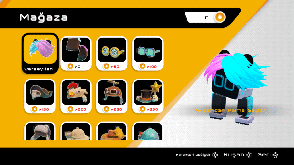 - Ödüller: Hazine toplayıp komik şapkalar alma ve robotu giydirme.