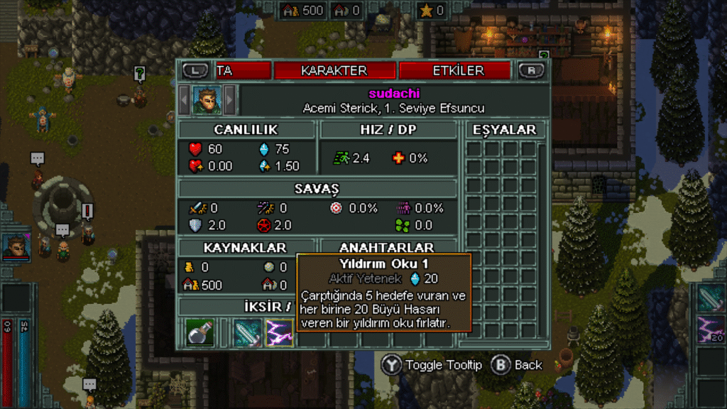 - Kalıcı Gelişim: Kasabanda bulunan tüccarlar aracılığıyla kalıcı karakter yükseltmeleri satın alabilirsin. Kazanılan tecrübe (EXP) kaybolmaz.