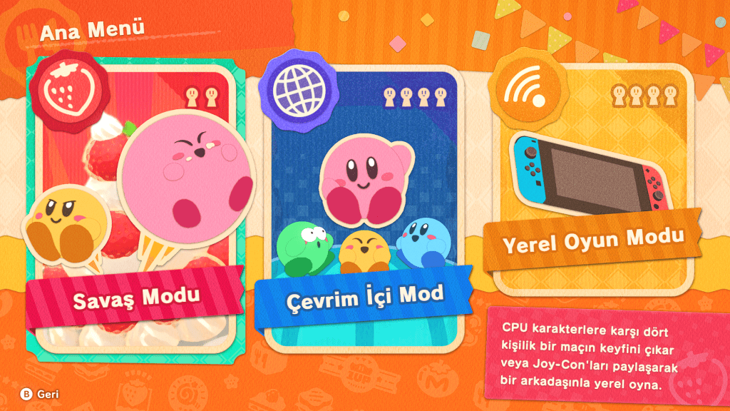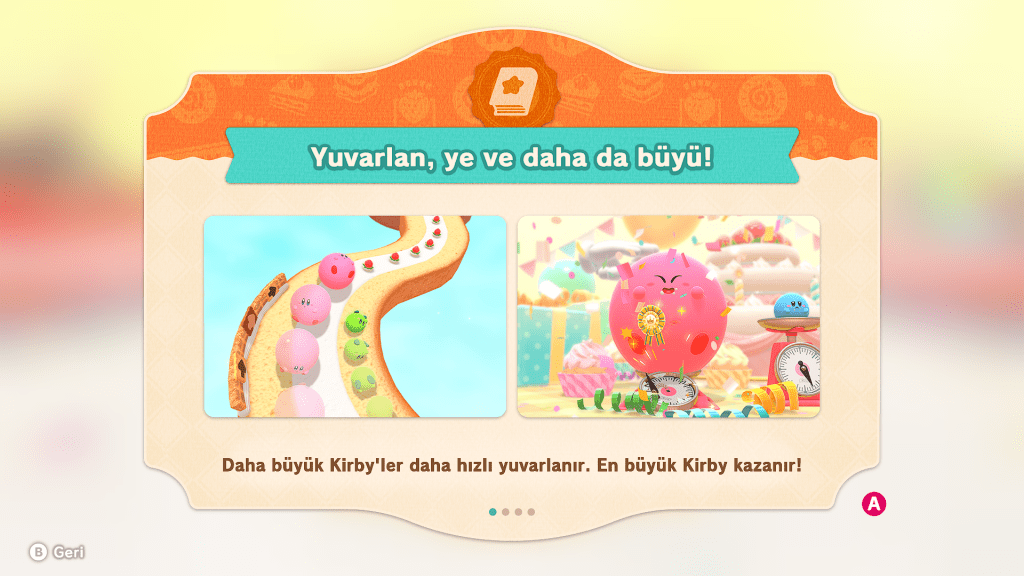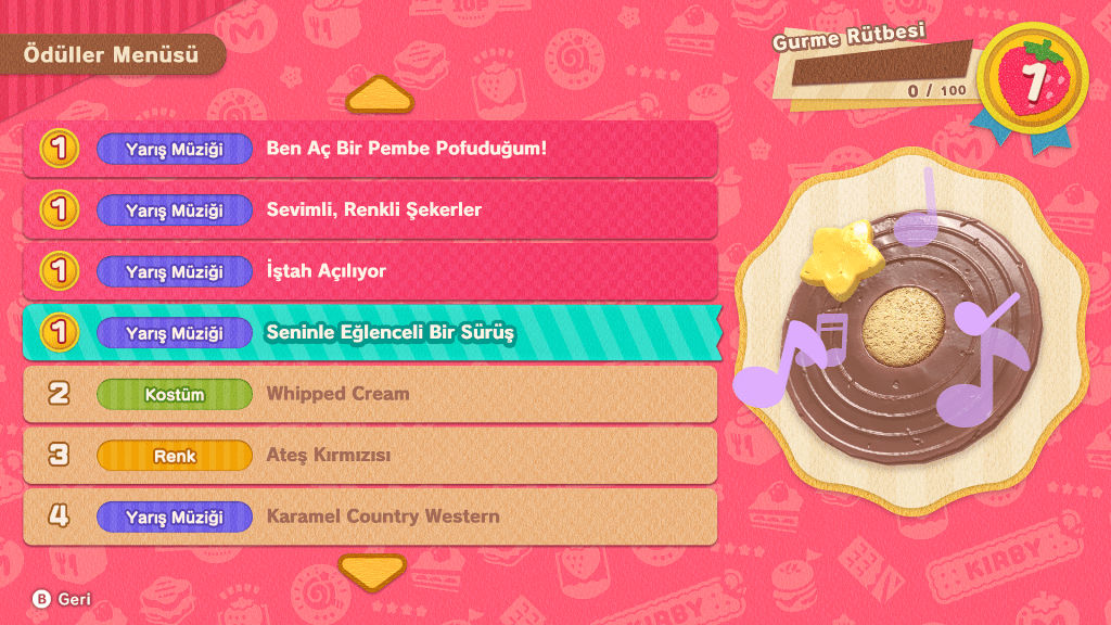 - Özelleştirme: Yarışları kazandıkça Kirby için farklı renkler, kostümler ve pasta süslemeleri açabilirsiniz.