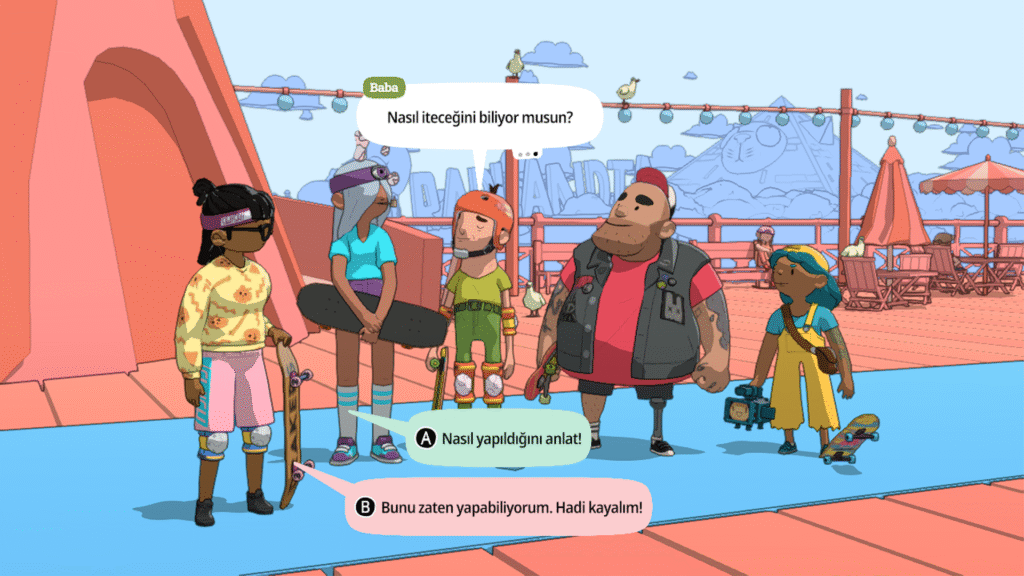 - Oyunun hikayesi ciddi bir ton yerine daha çok kaykay esprileri ve eğlenceli diyaloglarla ilerler.