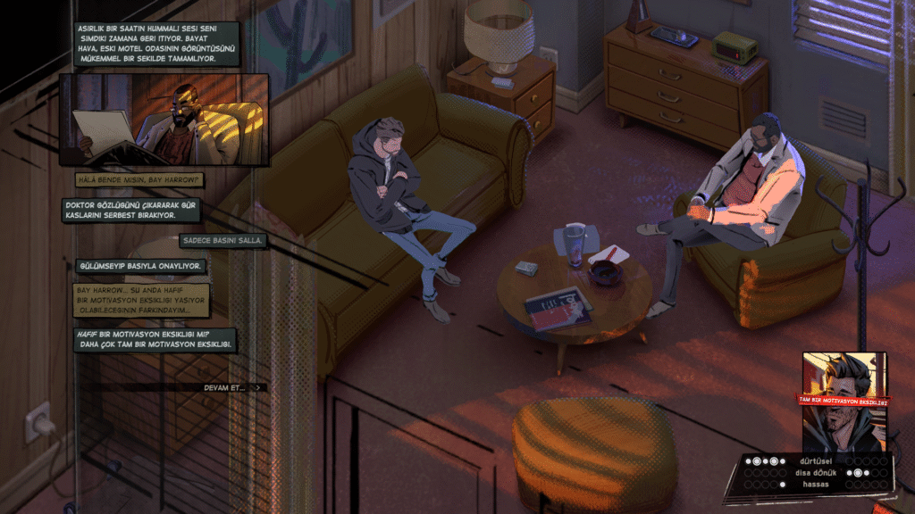 - Anı Saklama: Oyunun önemli bir mekaniği olan anılar, bir grafikte saklanır ve Rue Valley Motel‘de yeni zihniyetlerin kilidini açmaya ve ana karakteri geliştirmeye yardımcı olur.