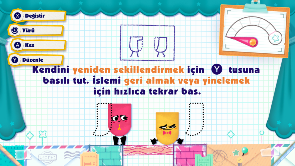 - Oyunda Snip ve Clip adında, kağıttan yapılmış iki sevimli karakteri kontrol ediyoruz.