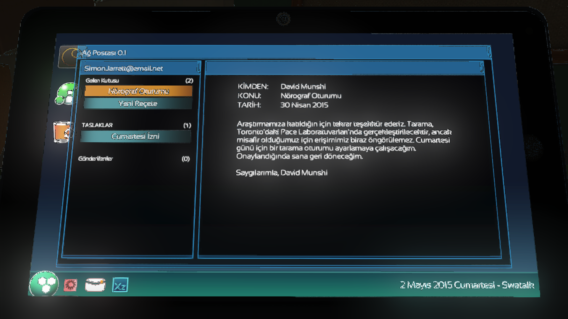 - Hayatta kalmak için deneysel bir beyin taramasına girmeyi kabul eder. Tarama sırasında bilincini kaybeden Simon, kendini yaklaşık 100 yıl sonra, okyanusun dibindeki terk edilmiş bir su altı araştırma tesisi olan PATHOS-II’de bulur.