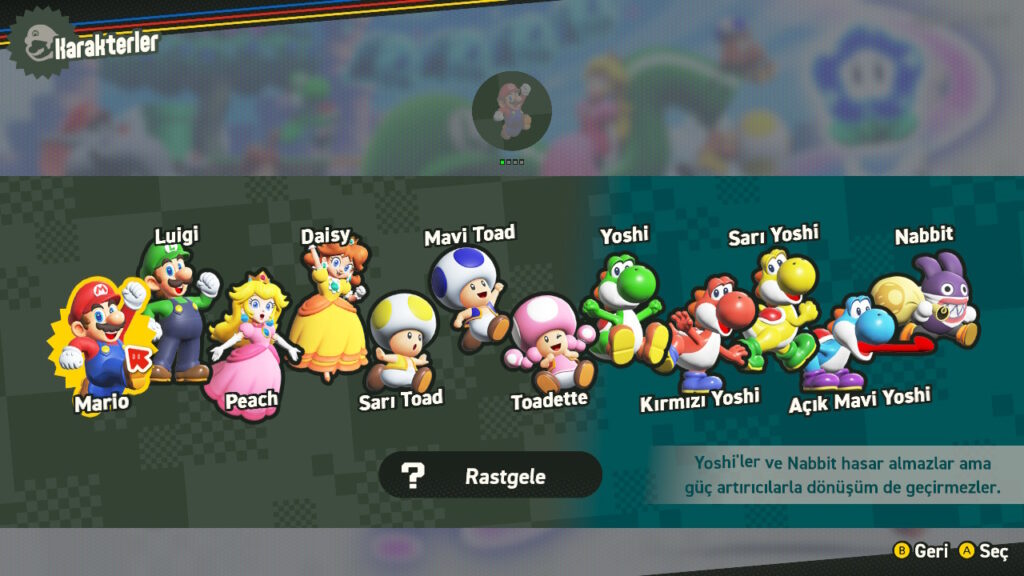 - Geniş Karakter Kadrosu: Mario, Luigi, Peach, Daisy, Toad’lar ve Toadette gibi birçok seçilebilir karakter bulunur.