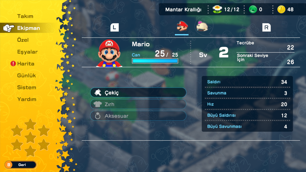 • Mario, her zamanki gibi Prenses Peach’i Bowser’ın elinden kurtarmaya giderken gökyüzünden devasa bir kılıç (Exor) düşer ve Bowser’ın kalesine saplanır.